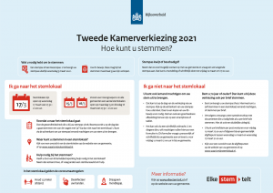 Op woensdag 17 maart 2021 is de Tweede Kamerverkiezing. Vanwege het coronavirus neemt de overheid maatregelen om de verkiezing zo goed mogelijk te laten verlopen. Zo gaan in alle gemeenten een aantal stembureaus al open op maandag 15 en dinsdag 16 maart, vooral voor risicogroepen. Lees verder over hoe je kunt stemmen in Waskemeer.
